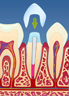 Før stiften kan monteres, må tannens rotfylling kontrolleres. Om rotfyllingen ikke lenger holder mål, bør den gjøres om igjen før stiften settes på plass.