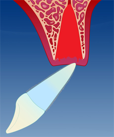 Når tannen er ren kan man forsiktig forsøke å sette tannen tilbake på plass i munnen til den skadete. Dersom tannen er tilbake på plass innen noen få minutter, øker muligheten for å redde den.