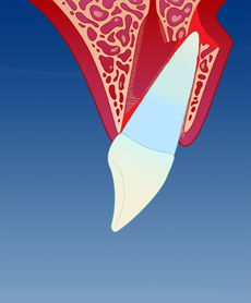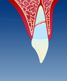 Brudd inn til tannens nerve, der hele tannkronen er borte.
