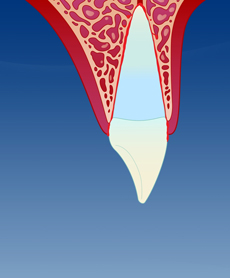 Tannen er slått oppover i kjevebenet.