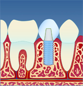 Et implantat er en liten skrue i titan som opereres inn i kjevebenet der det mangler en tann(fig I-II). I løpet av noen uker tilheler kjevebenet rundt implantatet, slik at implantatet kan fungere som feste for en tannerstatning, f.eks. en krone i porselen (fig. III-IV).