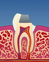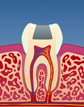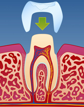 Dersom tannen er veldig svekket, kan det vise seg at en stor fyllingsoppbygging ikke vil være sterk nok. Dette kan særlig gjelde for rotfylte tenner. Da kan en keramisk krone (porselenskrone) være et bedre alternativ. Å få fremstilt en keramisk krone innebærer at tannen slipes og formes til slik at en porselenstann kan sementeres utenpå.